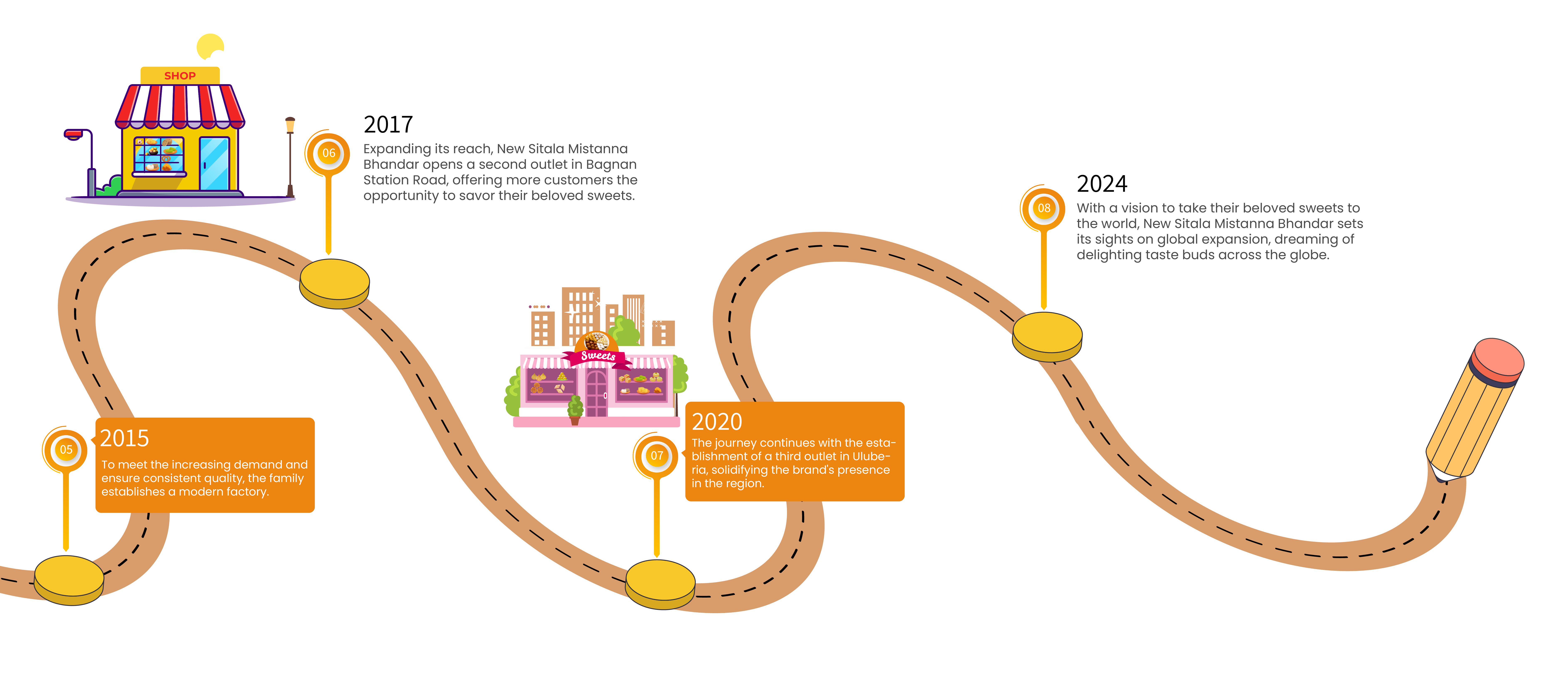 Currently, our shop has entered its 48th year. Initially, everyone viewed a sweet shop from a different perspective, but now ‘New Sheetla Misthan Bhandar’ has managed to elevate it to a whole new level. With the blessings of our parents, the grace of God and our customers, and the hard work of all our staff, we have transformed the sweet shop into a large factory.